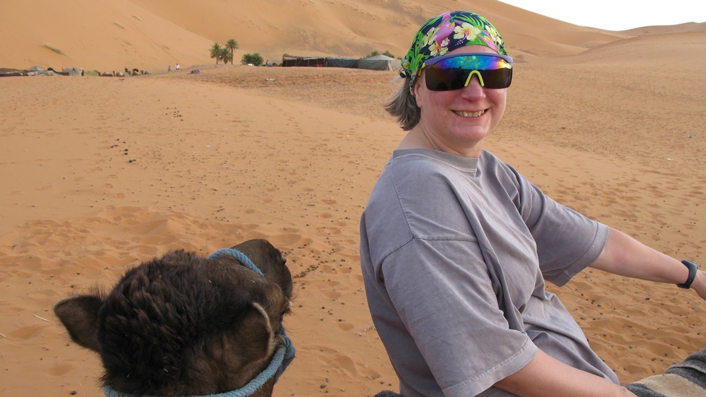 Heading out on our camels into the Sahara desert. It took about 75 minutes to get to our camp.